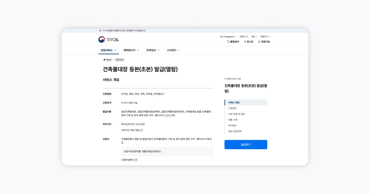 정부24에서 건축물대장 열람하는 방법: