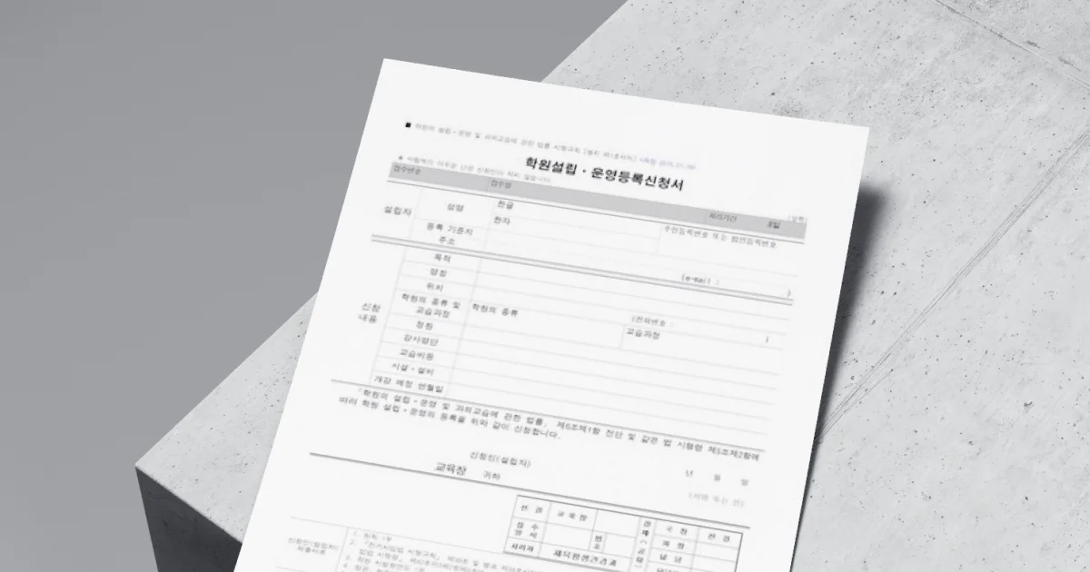 학원 설립·운영 등록 신청서 (교육지원청 비치)